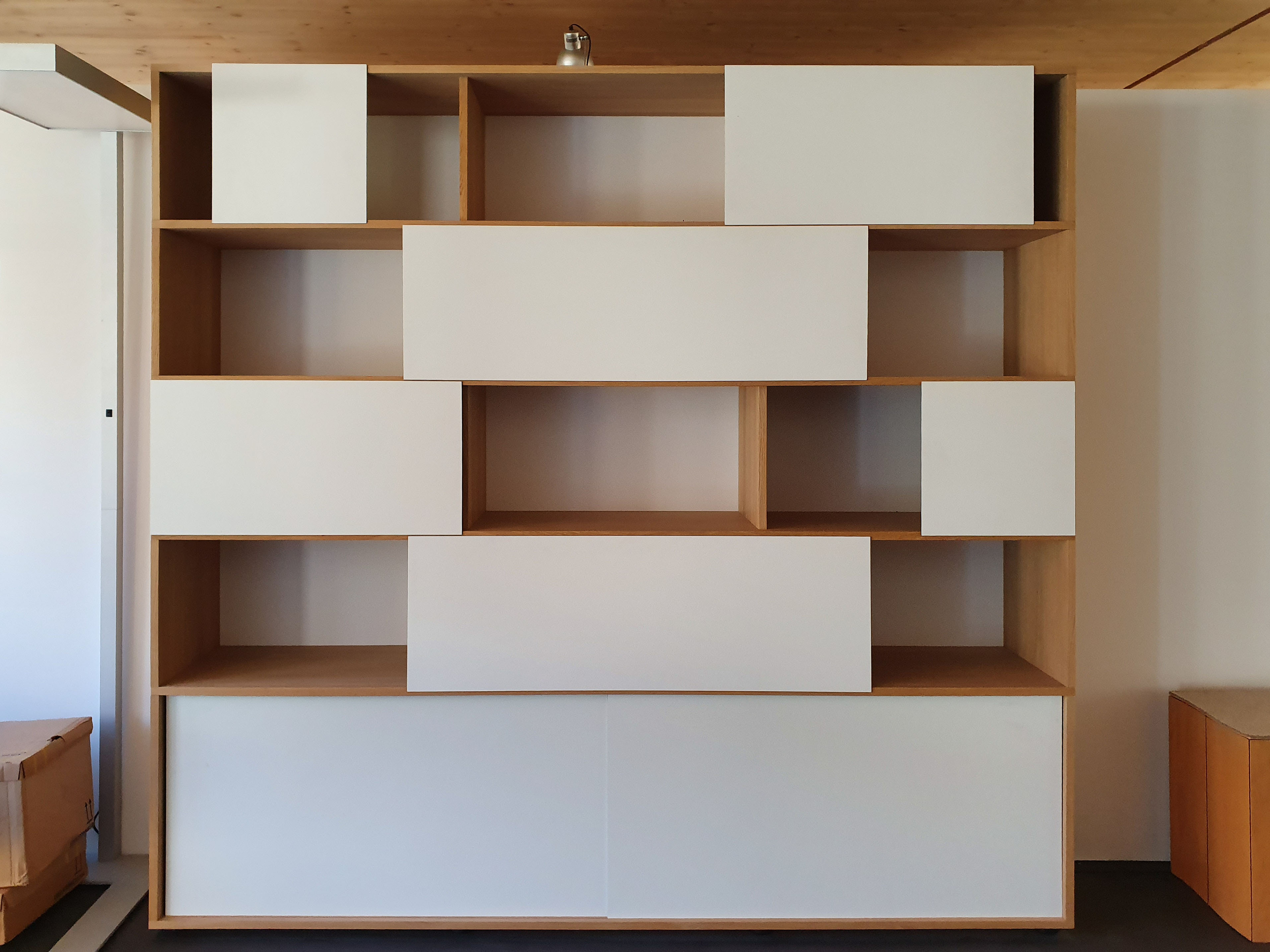 regal. eiche massiv. geseift. 210 x 41 x 204cm.