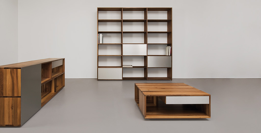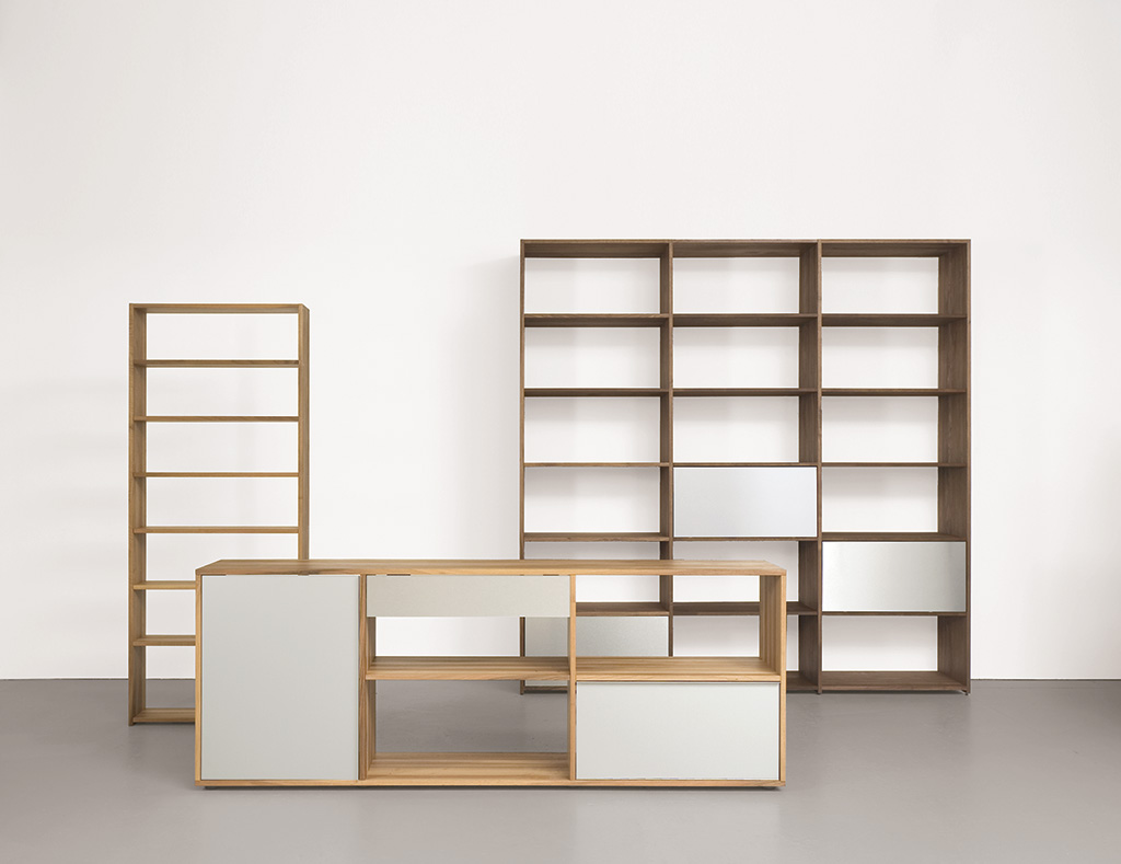 customized shelf- and sideboardsystem. solid wood, multiply or mdf. dasregal can serve as a shelf for books, as wardrobe, as low- or sideboard, as sidetable, as wallmounted shelf or as furniture for sitting. pieces of furniture up to a height of 160 cm have end to end boards at the top and the bottom. higher shelves have end to end sides. the configuration program (sanktjohanser.net) is based on standard sizes. price of customized size corresponds to next in size shelf.
