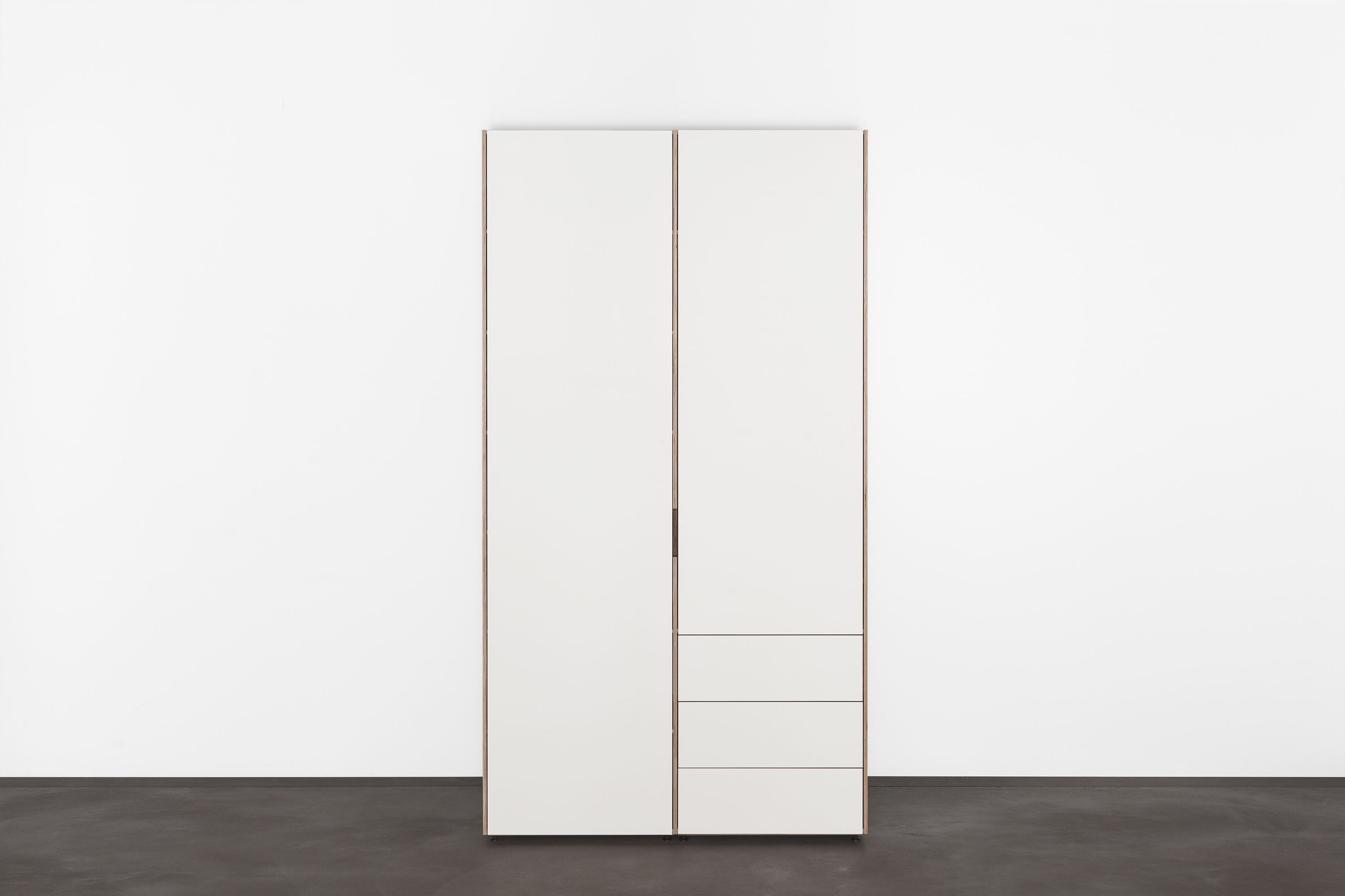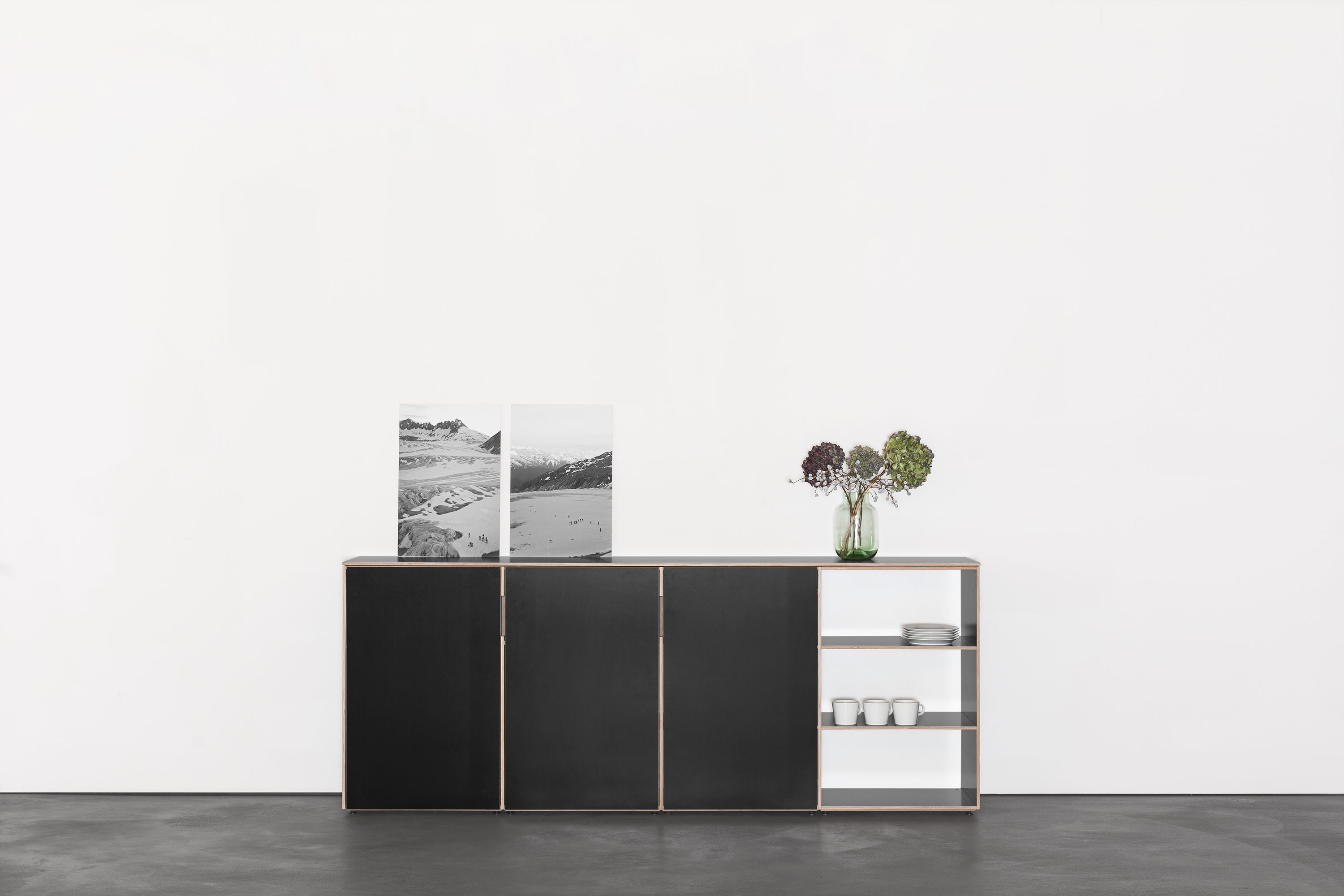 modular cupboard and storage furniture system made to measure material thickness uniform 12mm. optionally as a room divider and with front or side open compartments. slim side panels with recessed handles give rhythm to the fronts and define the restrained appearance. the interior layout can be freely planned. revolving doors, clothes rails, drawers and variable compartments can be planned individually. sideboard or highboard, single or built-in wardrobe. high-quality fittings enable quick and easy installation.