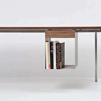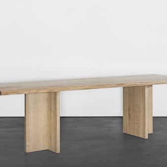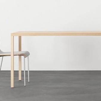 plakative unterschiede trennen die dinge. kleine differenzen schaffen machmal komplexe verbindungen, die sich einer beschreibung zunächst entziehen. das auge versteht sie sofort. euklid ist eine familie von tischen in massivholz, deren erscheinung durch ein subtiles spiel einfacher fügungen von flächen charakterisiert wird. die tischplatte ist...