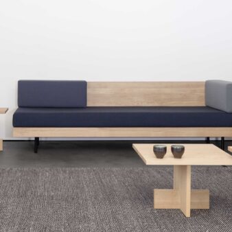 stapelbett, tagesliege. in massivholz oder multiplex. der auf gehrung gearbeitete holzrahmen ist 7 cm breit und mit der matratze aussen bündig. ein fest integrierter rost gewährleistet guten sitz- und liegekomfort. gestapelt ergeben die oben aufliegenden matratzen eine sitzhöhe von 44 cm und sind mit...