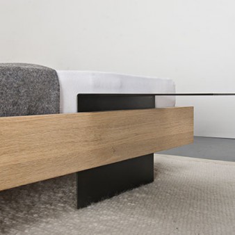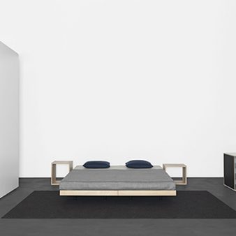 bett in massivholz oder multiplex. mit oder ohne hohem rückenteil. die charakteristische umlaufende ablage ist seitlich 17,5 cm breit, am fuss-/kopfende 12,5 cm. eine einlegetiefe von 12 cm ermöglicht den einsatz von starken matratzen. durch die zurückliegende schlanken rundbeine schwebt das bett und vereint komfort...