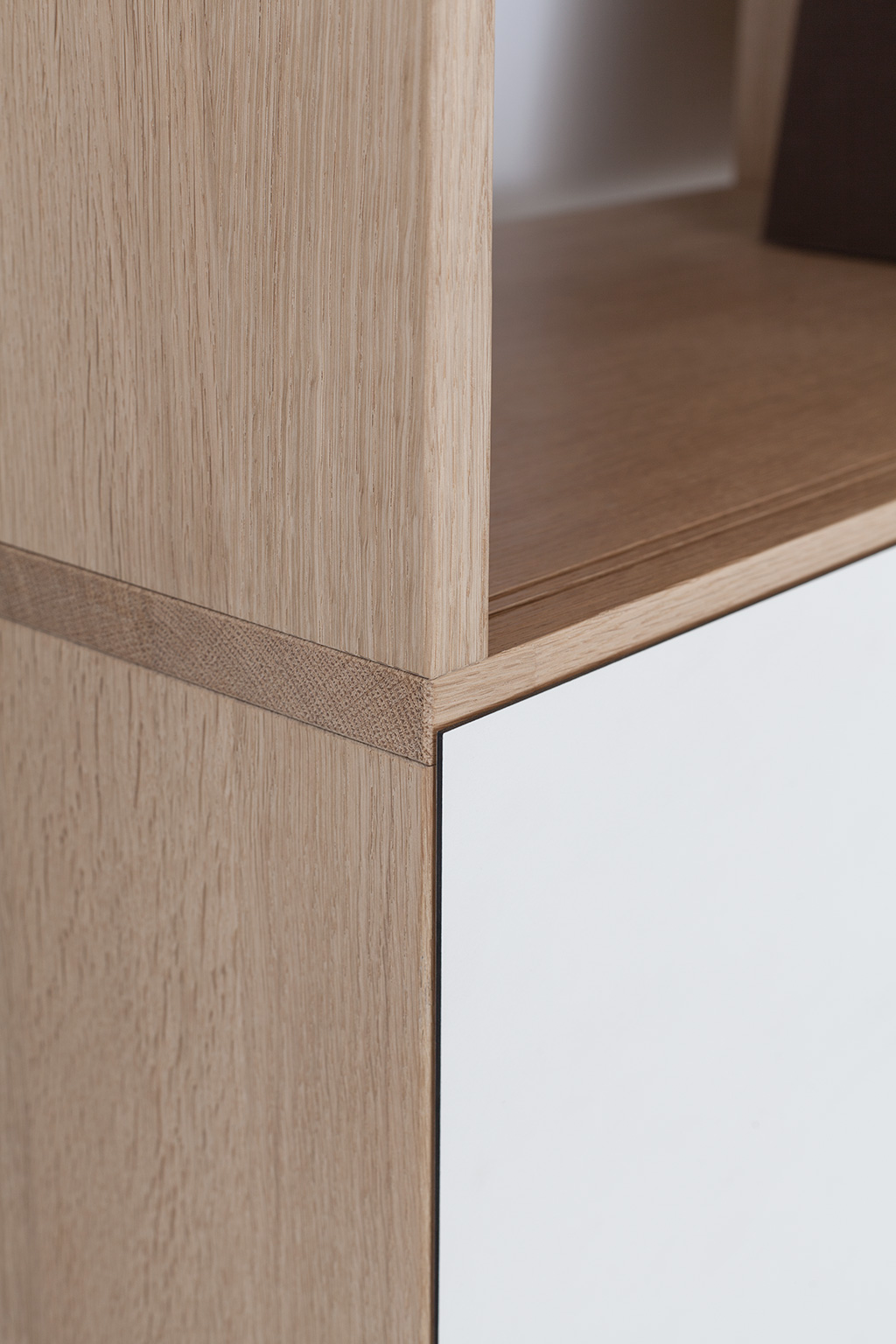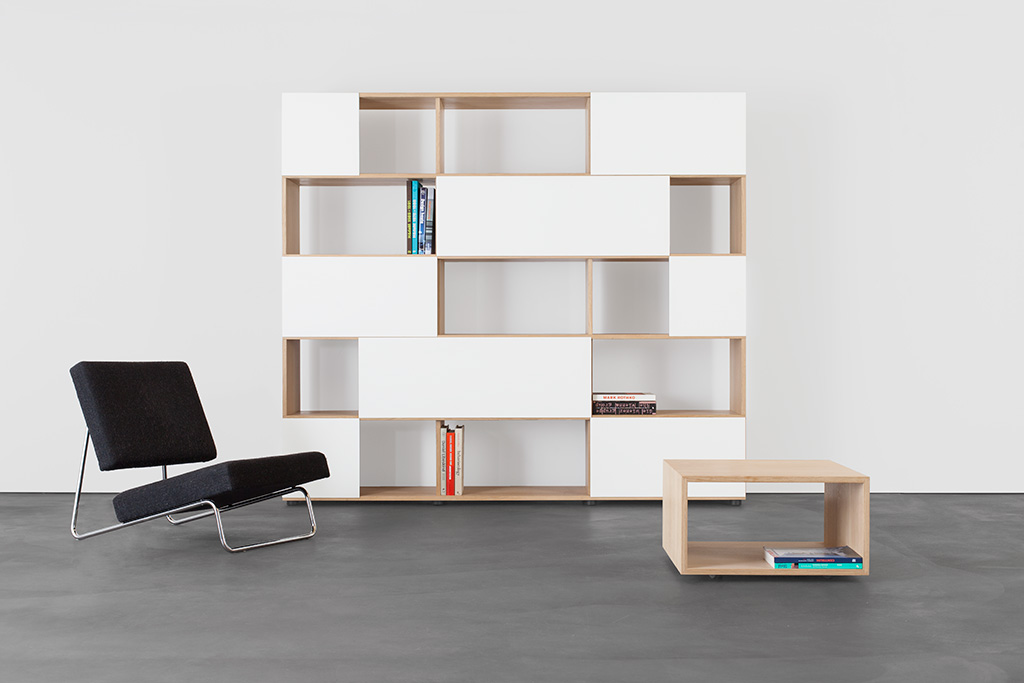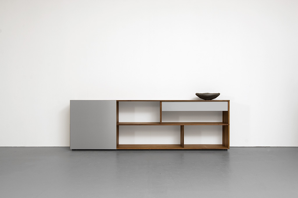 modulares regal- und sideboardsystem, in massivholz, multiplex oder mdf. analog wird geschossweise aufgebaut. vier verschiedene etagenhöhen können frei kombiniert werden. die beiden grösseren fachhöhen sind zusätzlich mit verstellbaren fachböden ausgestattet. leichte schiebetüren in mattweiss, mattschwarz oder aluminium laufen vor oder in dem korpus. verschiedene schiebetürgrössen können beliebig angeordnet werden und lassen so die unverwechselbare ästhetik von analog entstehen. innenliegende schiebetüren ermöglichen ein komplett geschlossenes möbel.
