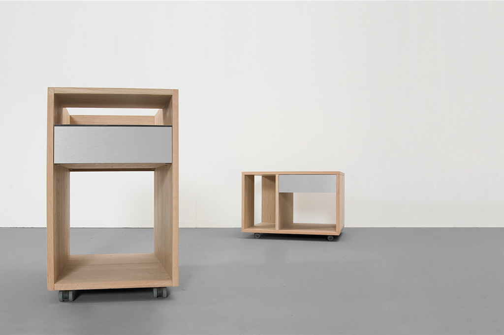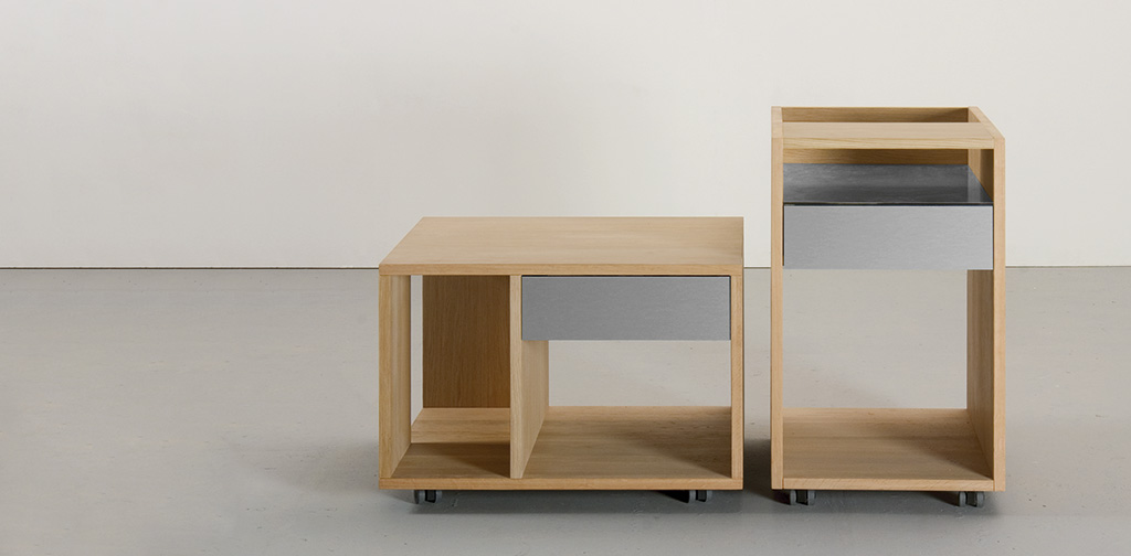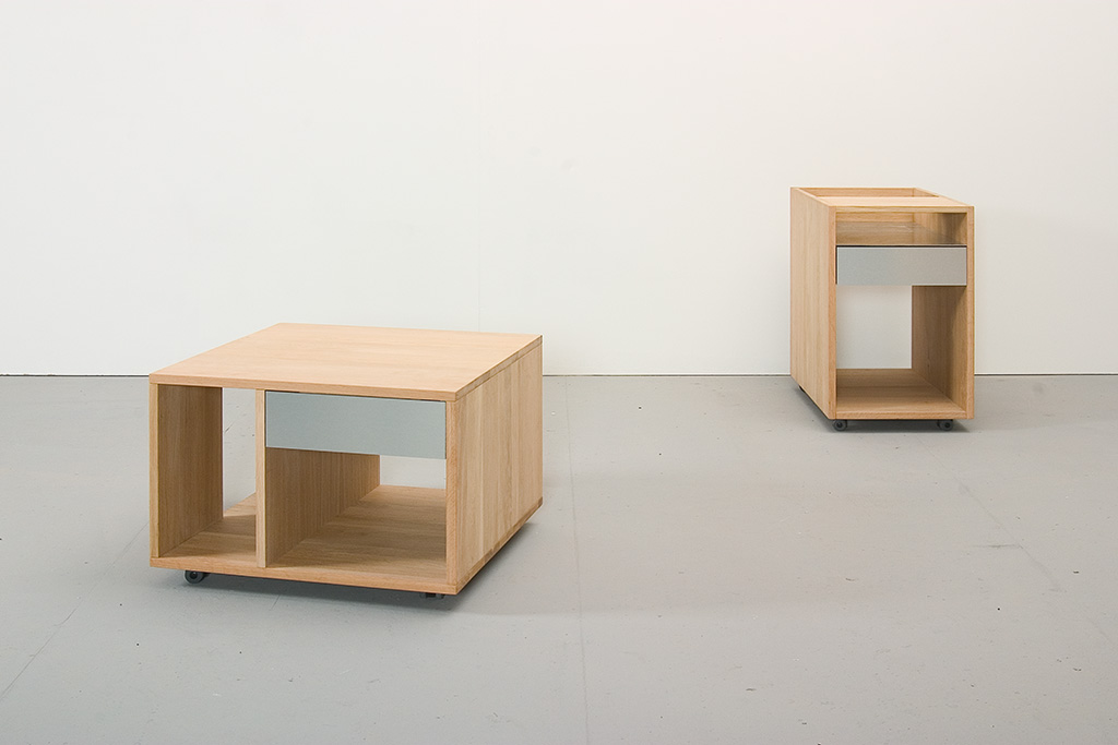 rollcontainer, rolltisch, massivholz oder multiplex . depot x ist in sechs verschiedenen ausführungen erhältlich: 1 als rollcontainer, mit einem holz- und einem alumiumfach. 2 als rollcontainer mit einer schublade. 3 als rollcontainer mit zwei schubläden. 4 als rolltisch. 5 als rolltisch mit einem zusätzlichen fach. 6 als rolltisch mit einer tablettschublade.