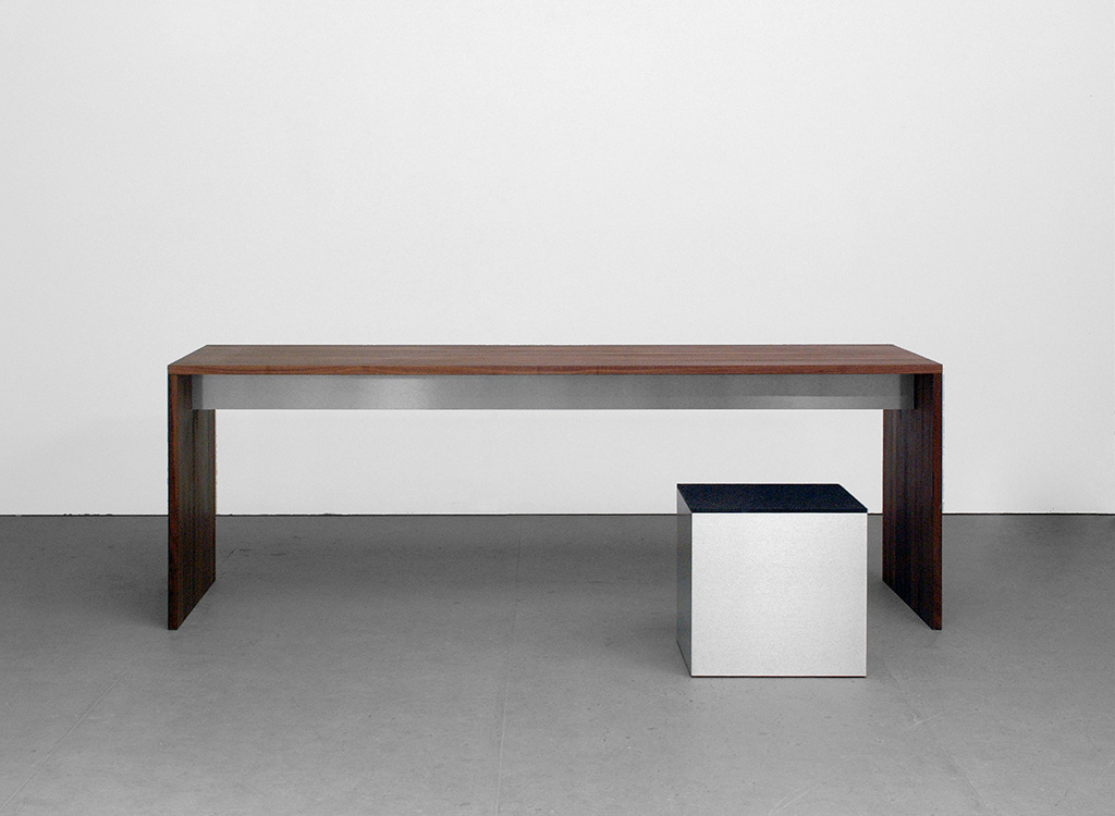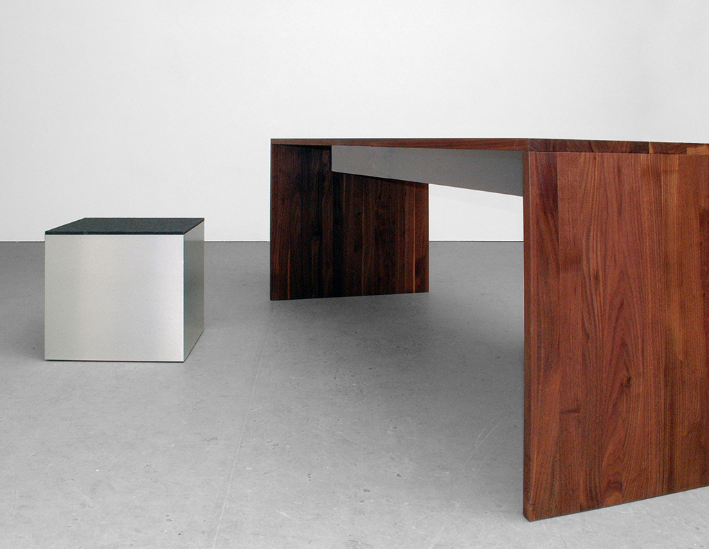 tisch, massivholz oder multiplex. universell einsetzbarer tisch mit zwei bündigen seitenwangen. tischplatte und wangen sind mit einer identischen ansichtsbreite von 2,5 cm ausgeführt. der innenliegende steg ist beschichtet oder in der jeweiligen holzart erhältlich. format wird festverleimt geliefert.