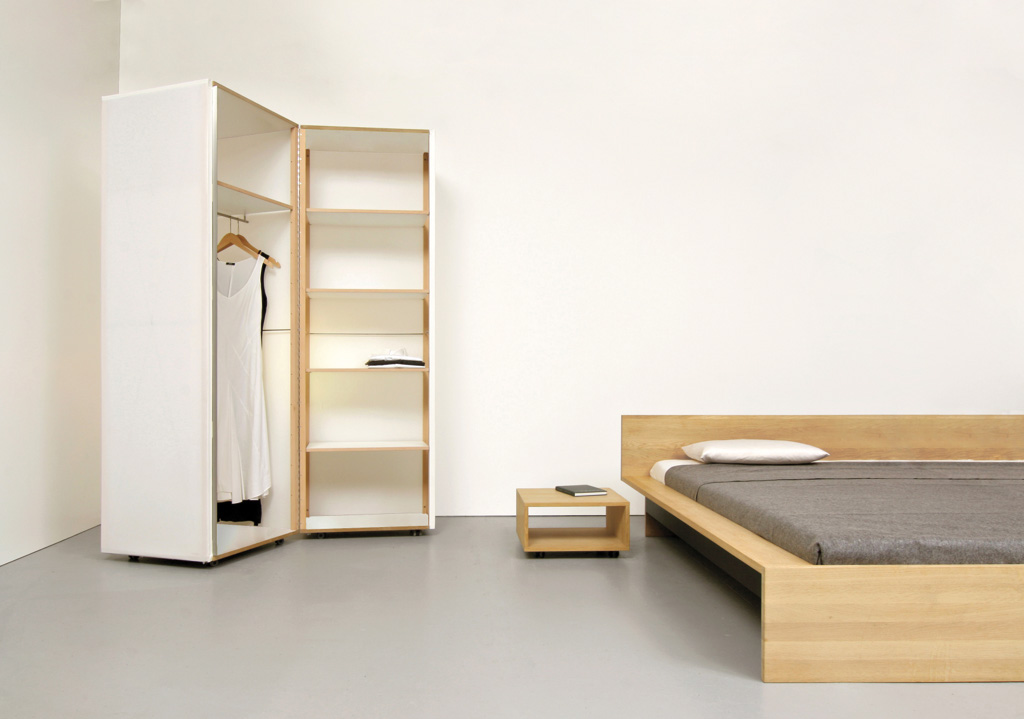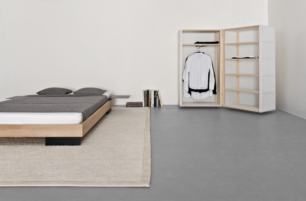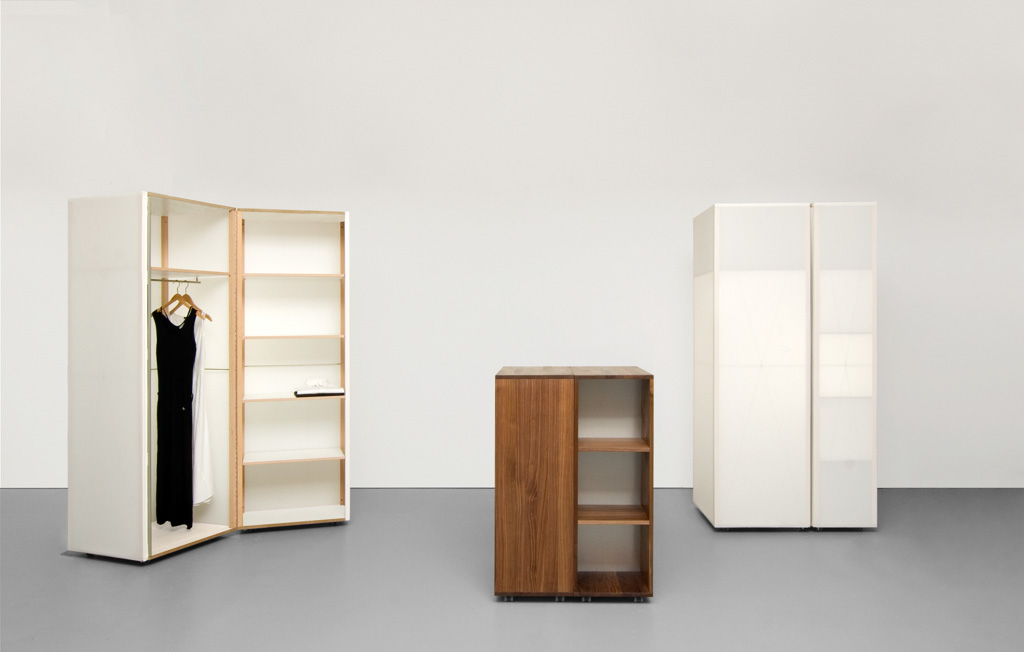 ist ein zweischaliger, universell einsetzbarer schrank mit verschiedenen abmessungen. quartier ist mit einer hochwertigen textilbespannung (weisses segeltuch) ausgeführt. die mit einem scharnier verbundenen elemente können identische oder unterschiedliche tiefen haben. als transluszenter zweiteiliger rollschrank ist quartier in sechs grössen erhältlich. der textilbespannte korpus kann mit fächern oder kleiderstangen versehen werden. innenausstattung in eichenholz und in matt-weiss beschichteten flächen.